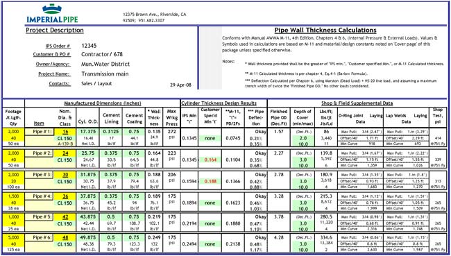 We can devote over a Quarter-Century of practical experience to your project, working with hundreds of Contractors, Agencies, and Engineers; Imperial Pipe has the knowledge to ensure your line is designed and manufactured to lay well and fit properly in the field.