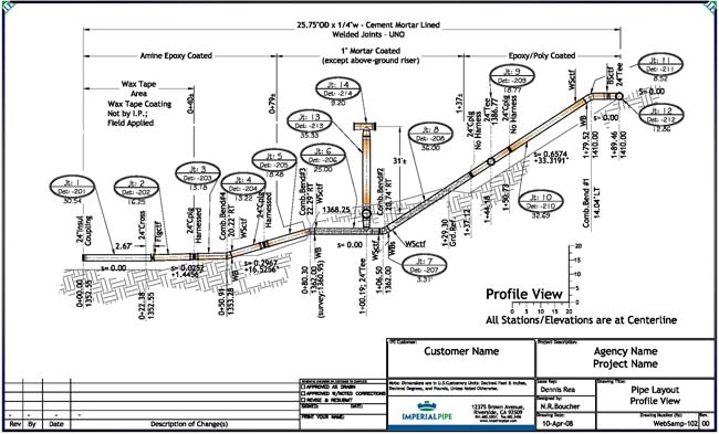 Field Assembly and sequential lay drawings coordinate your plans with the markings of each manufactured pipe section: